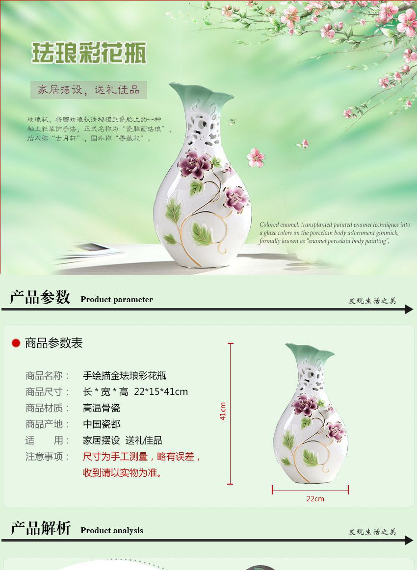 首页 > 材料展厅 > 高档陶瓷花瓶景德镇手绘描金珐琅彩花瓶现代中式简约家居摆件