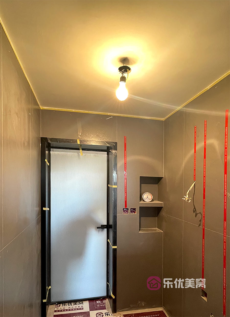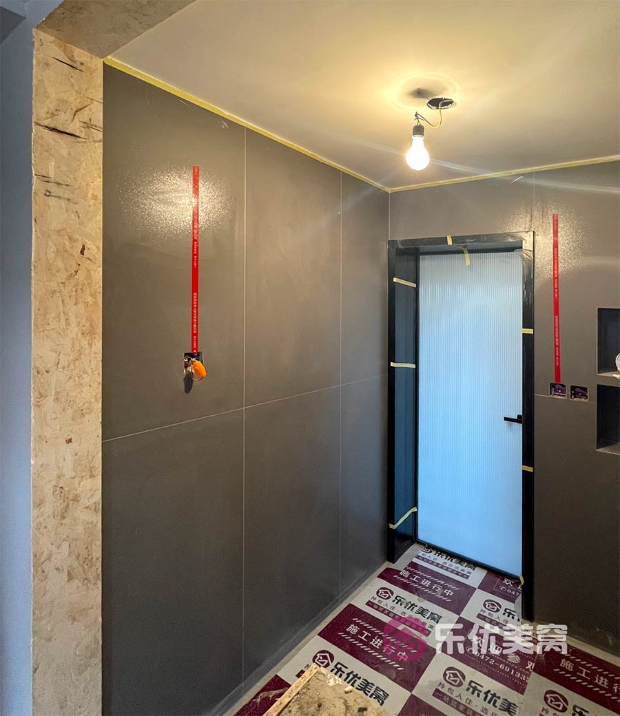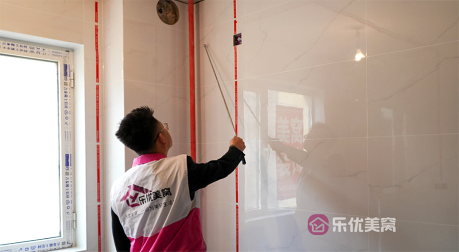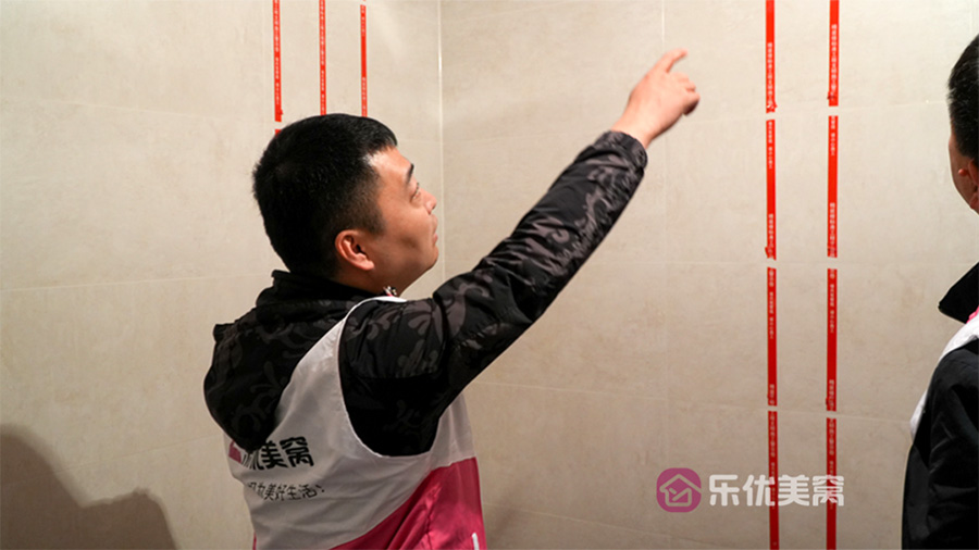 △瓷砖铺贴完毕后需要在瓷砖上贴好水电标识线,防止安装阶段打孔不慎破坏线路。 工程是筑家的基础。乐优美窝家居始终秉承匠心精工的意识及服务态度,以严格规范的巡检制度自我监督,让工程基础质量拥有强有力的保障,为万千业主打造出“内外兼修”的品质梦想。