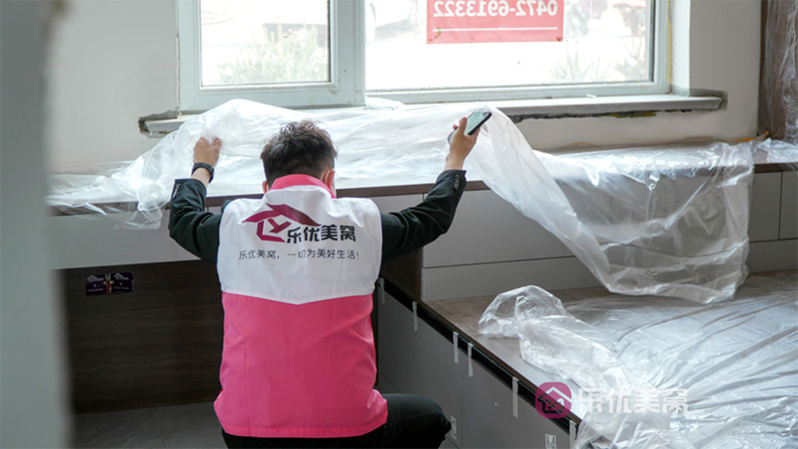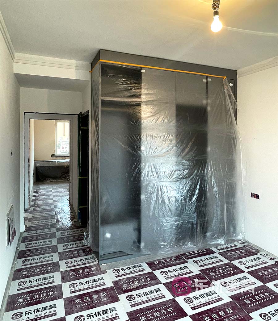 △安装完成的定制柜都使用防尘膜进行保护,细心呵护业主新家。