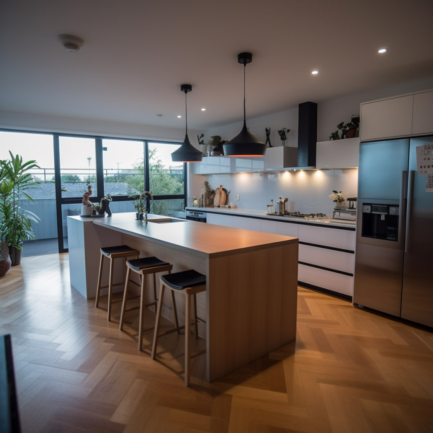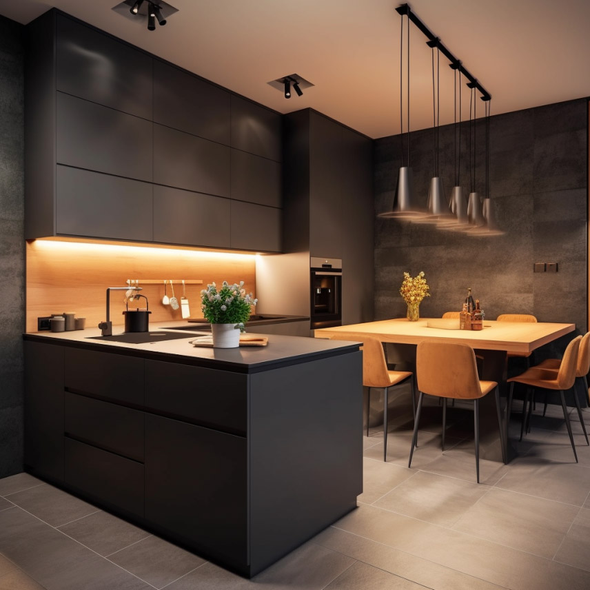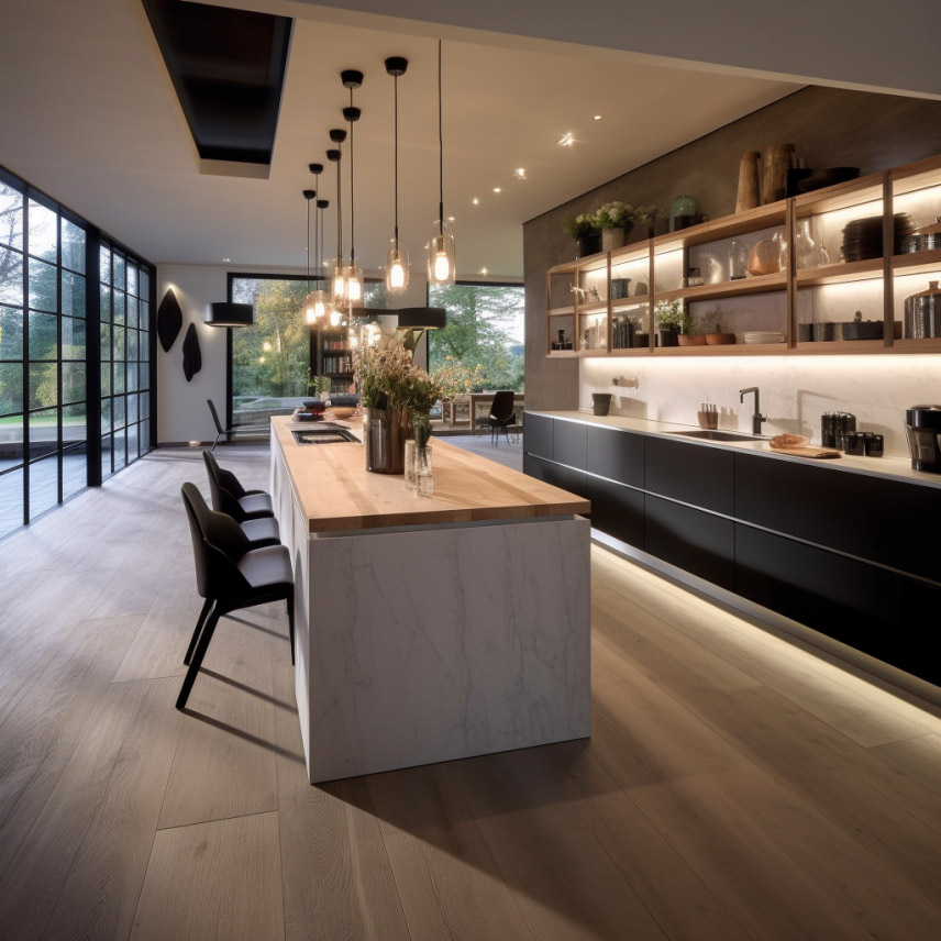 原木材质的台面与地板或相面颜色相呼应,看起来更加协调、有秩序。