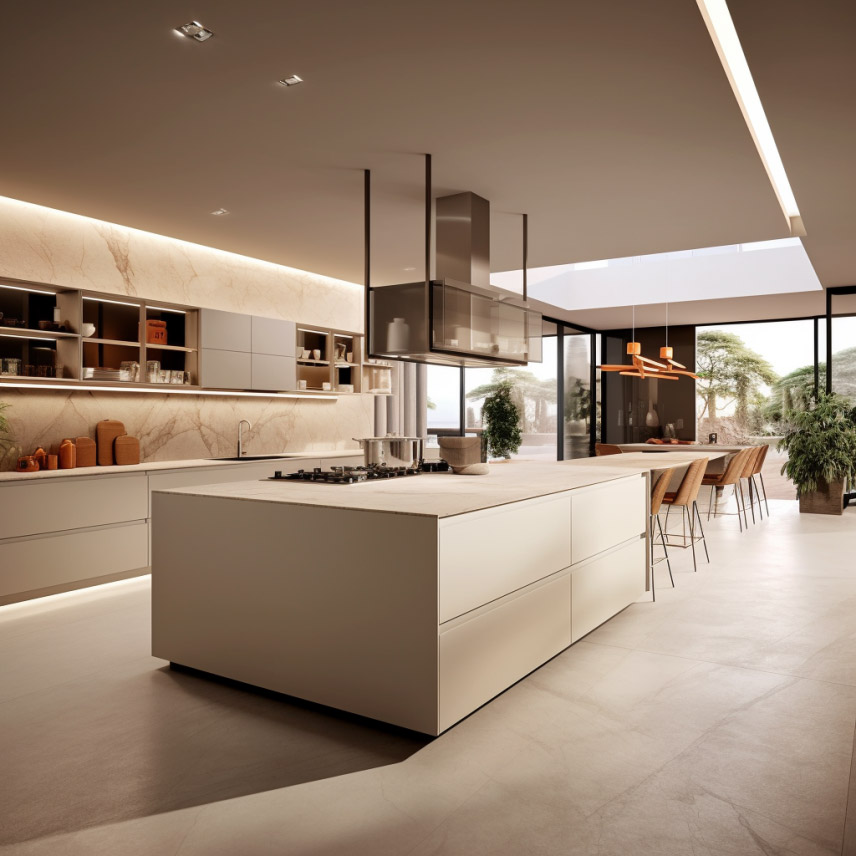 岛台是需求前期规划的,大小虽然没有固定尺寸,但对厨房的规模有一定的要求,要考虑到岛台高度、两边橱柜开门的距离、舒适度与否等问题。此外,岛台的成本相对来说比较高,是一般橱柜价格的1.5-2倍,因此岛台比较适合厨房面积大且预算相对充足的家庭。目前岛台最流行的设计是餐桌岛台一体化,这种设计对空间的利用更加细节化。