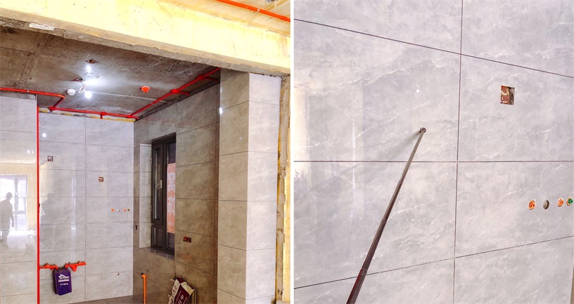 3、工人按走向,进行墙面或地面开槽。