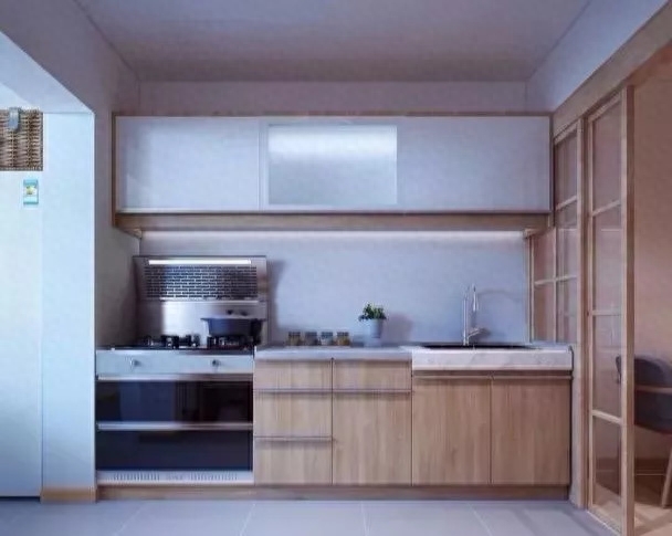 改造后:厨房采用白色和木质橱柜,隐藏式存储,台面只保留了一个调料罐和绿植,整体整洁舒适