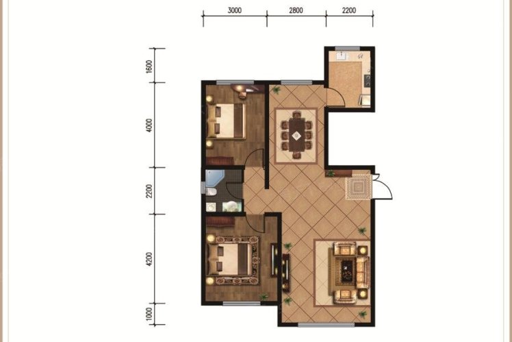 E2户型107.98平米-2室2厅1卫1厨