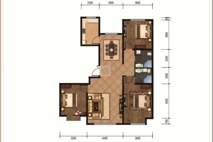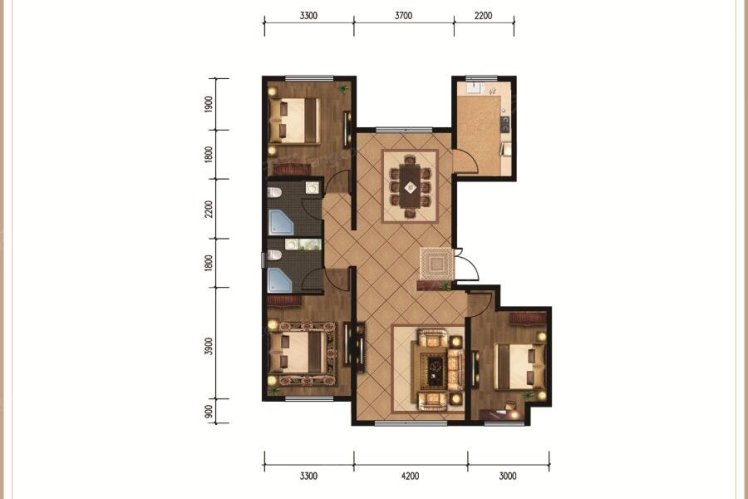 D2户型127.7平米-3室2厅2卫1厨